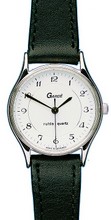 schwarzes Lederband,weißes Zifferblatt silbernen Indices,