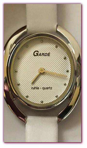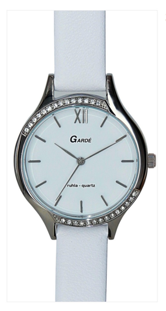 weißes Zifferblatt mit silbernen Punkten/Steinchen