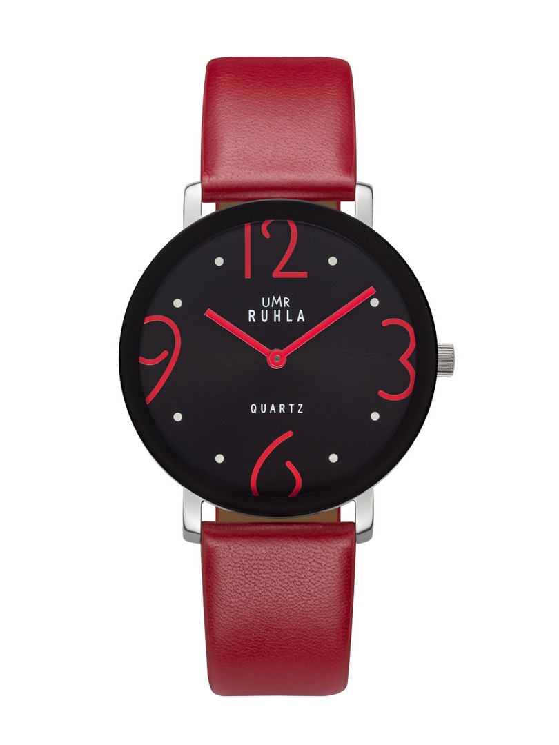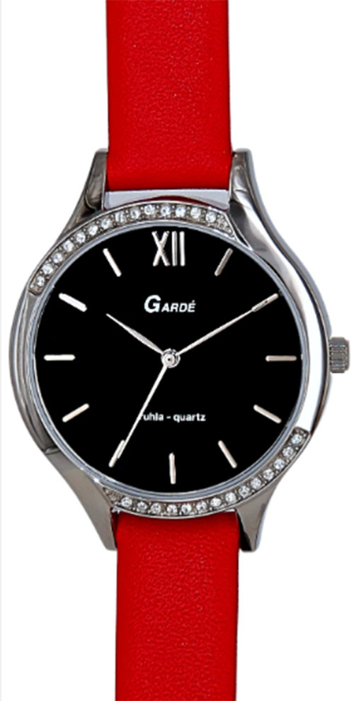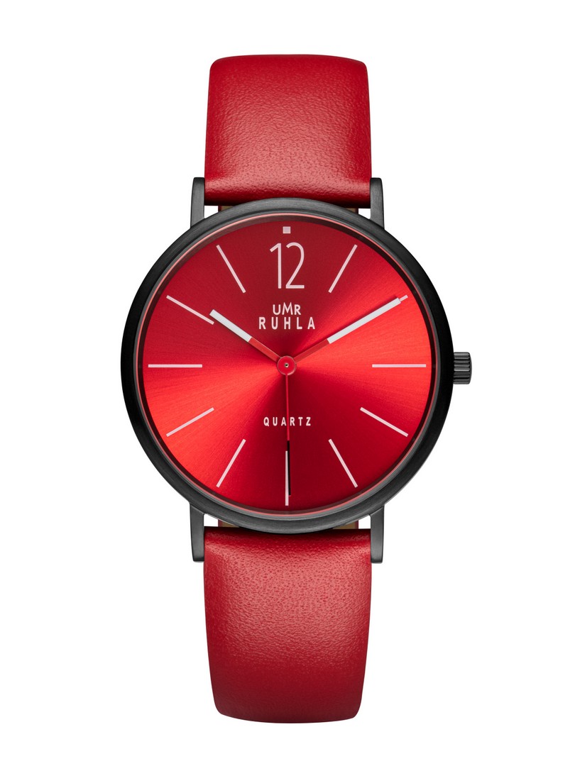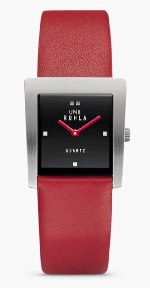 Lederband 12 mm rot, Stahl poliert, 3 atm