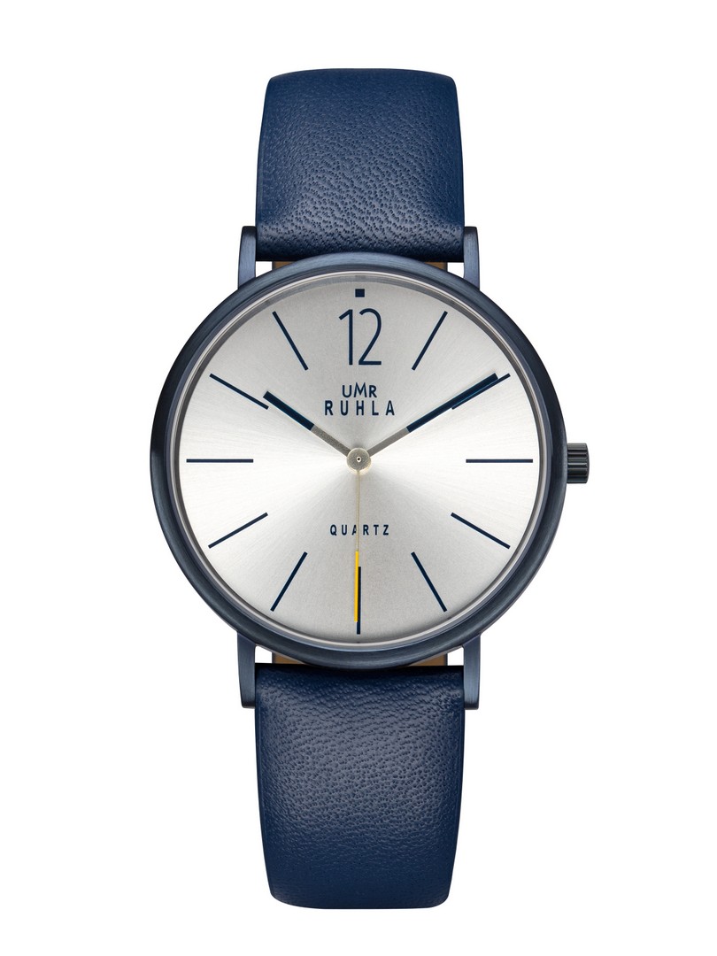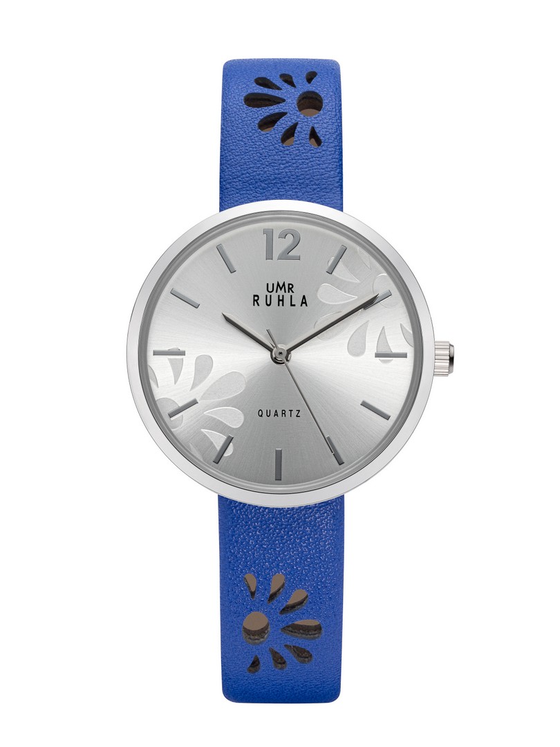 silbernes "sunray" Zifferblatt mit blauen Balken