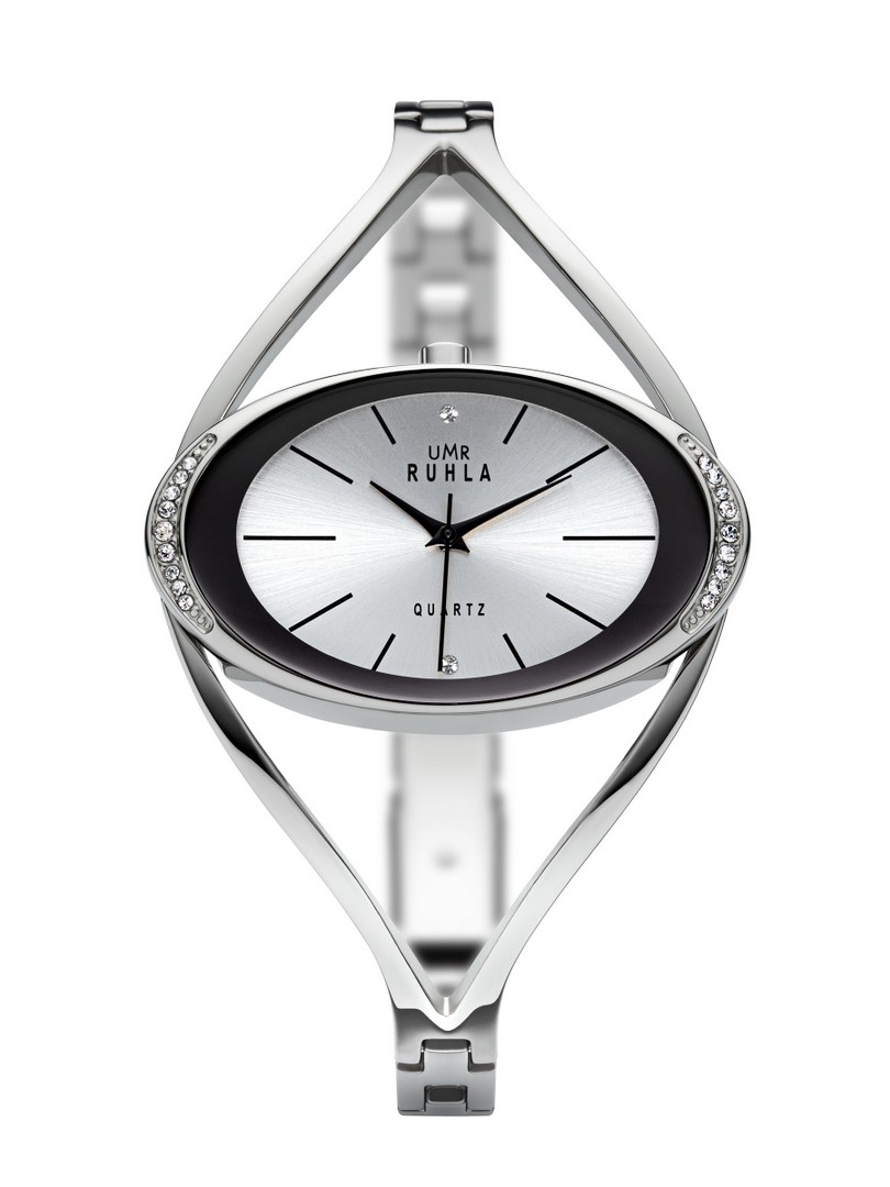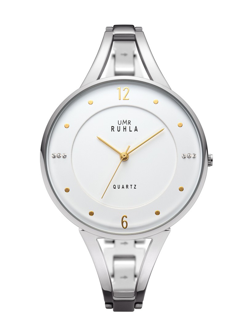weißes Zifferblatt mit silbernen Steinchen/Indices