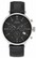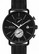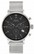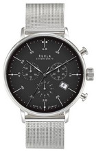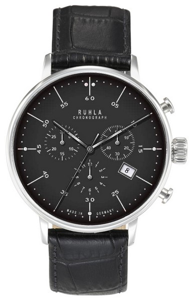 schwarzes Zifferblatt mit silbernen Zahlen/Indices