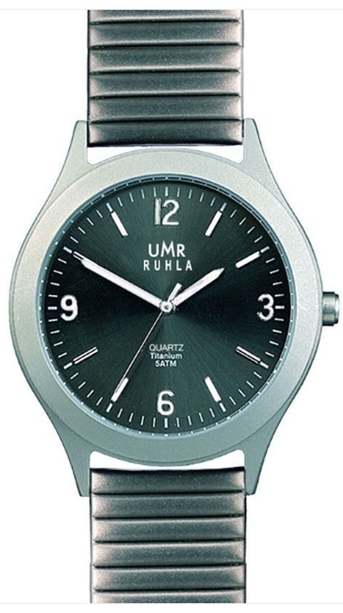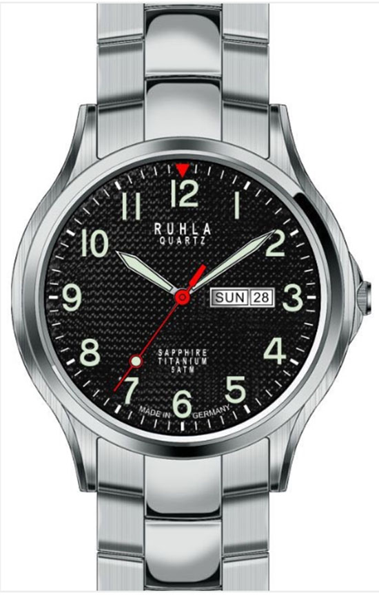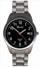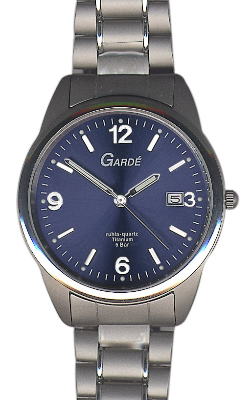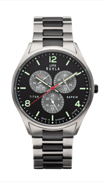 integriertes Titangliederband, matt/poliert,schwarzes Zifferblatt mit silbernen Zahlen/Indices,Durchmesser:36mm,Höhe:7mm,Gewicht:49g