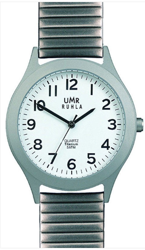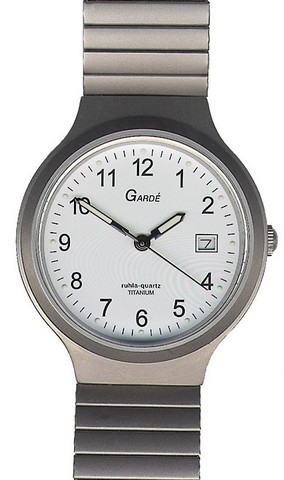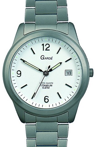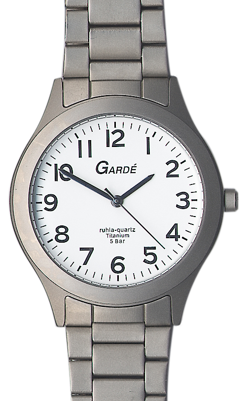 integriertes Titangliederband, matt/poliert,weißes Zifferblatt mit silbernen Zahlen/Indices