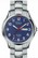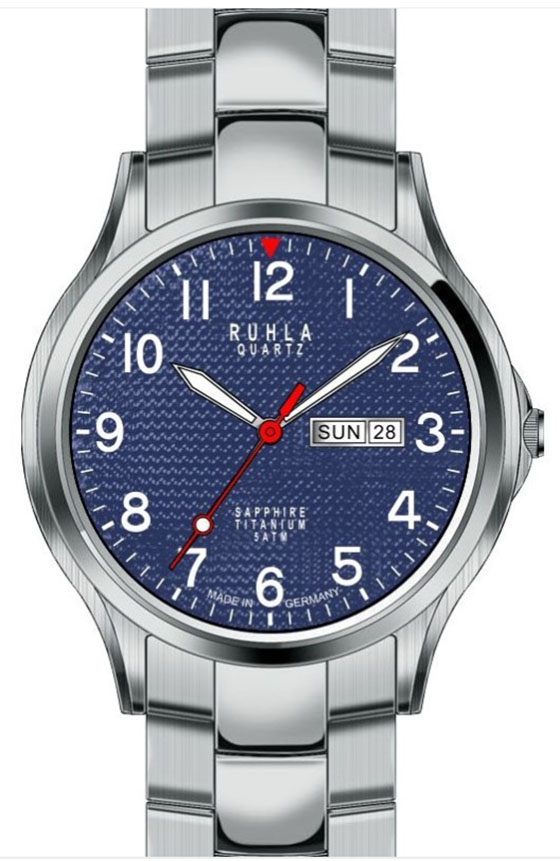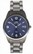 blaues Zifferblatt mit silbernen Zahlen/Indices