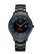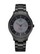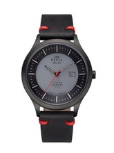 schwarzes Zifferblatt mit weißen Zahlen/Indices